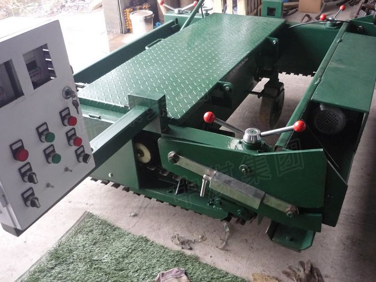 3.驱动装置:主驱动采用的是电机带动履带链条传动,采用变频器无级调速,能前进能后退,还能够作弧形运动。采用不同的履带表面,可在于不同底部基础上使用。